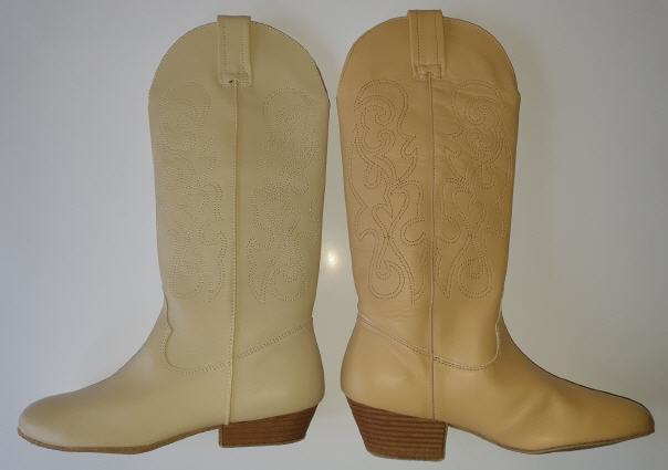 So leicht wie Trainingsschuhe, mit dem unvergleichlichen Western-Feeling. Made in Portugal! Herausnehmbare Innensohle Material: Stretchgewebe (Lycra) Sohle Indoor: Rauleder Absatz: 3.5 cm Schafthöhe: 30 cm (Gr. 39) Schaftweite: 32 cm (bei 27 cm) Farbe: beige Grössen: EU 36 - 39, 42, 44 - 46 Preis: CHF 150.- statt CHF 189.- |